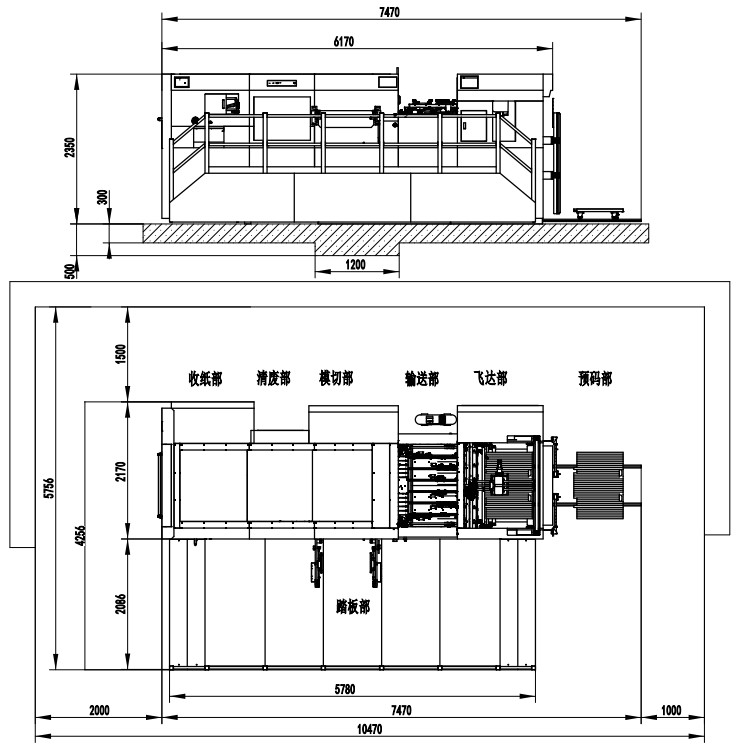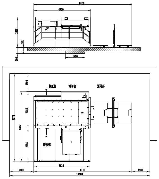 | 整機尺寸 | 7470×4256×2350mm (長含預上紙軌道;寬含腳踏板) | 9551×4506×2467mm (長含預上紙軌道;寬含腳踏板) | 9464×4688×2435mm (長含預上紙軌道;寬含腳踏板) | 9956×4706×2452mm (長含預上紙軌道;寬含腳踏板) | 10690×5117×2582mm (長含預上紙軌道;寬含腳踏板) |
