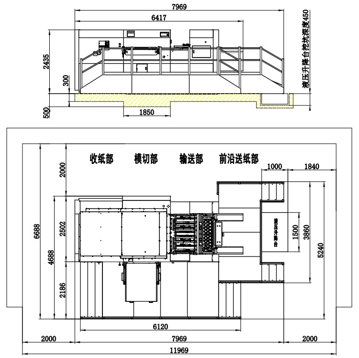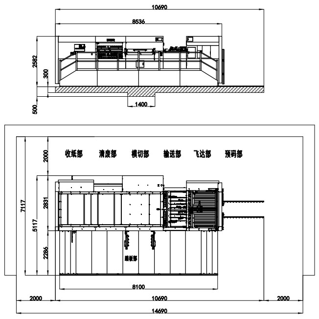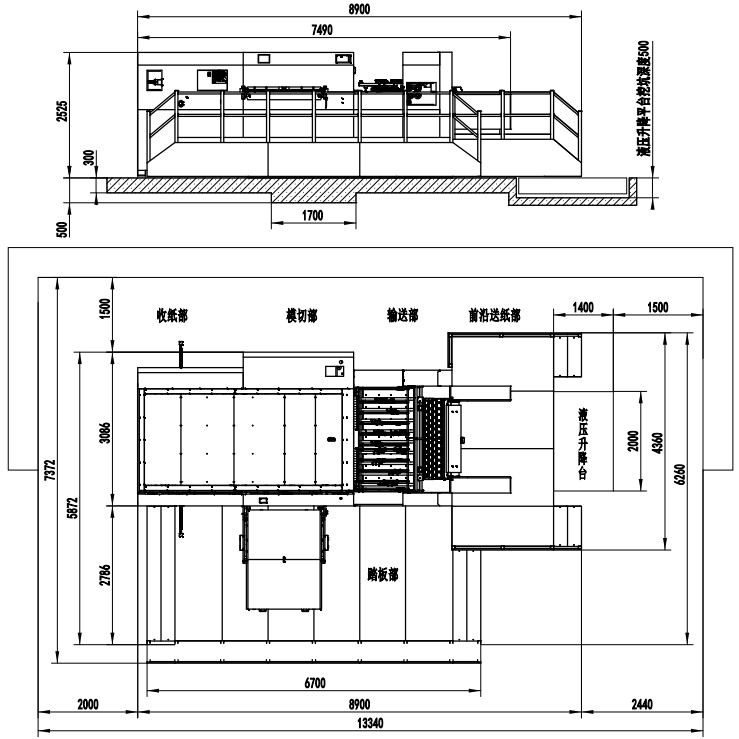 | 整機尺寸 | 7740×5240×2467mm | 7969×5240×2434mm | 8105×5240×2452mm | 8322×5580×2582mm | 8900×6260×2525mm |