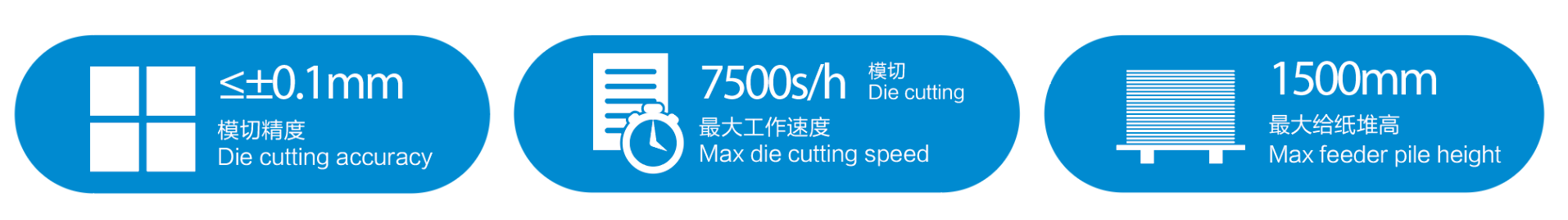 | 12、15mm模切鋼板墊板配備5mm組合式下墊板中心定位結(jié)構(gòu)+/-0.9mm縱橫向微調(diào)裝置, 換版快捷、簡(jiǎn)單, 減少補(bǔ)版作業(yè)時(shí)間 | 〇 |