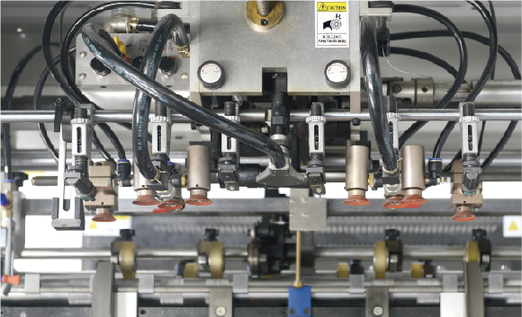 | 02、魚鱗式強力吸紙飛達頭,4 吸 4 送,吸頭可配合紙張的變形狀況調(diào)試各種吸紙角度 | 〇 |