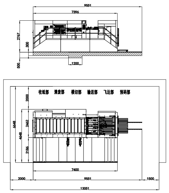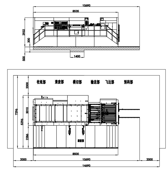 | 整機(jī)尺寸 (高堆卷簾式收紙) | 9551×4648×2767mm(L×W×H) (寬含腳踏板) | 9464×4728×2790mm(L×W×H) (寬含腳踏板) | 9958×4848×2803mm(L×W×H) (寬含腳踏板) | 10690×5296×2932mm(L×W×H) (寬含腳踏板) |