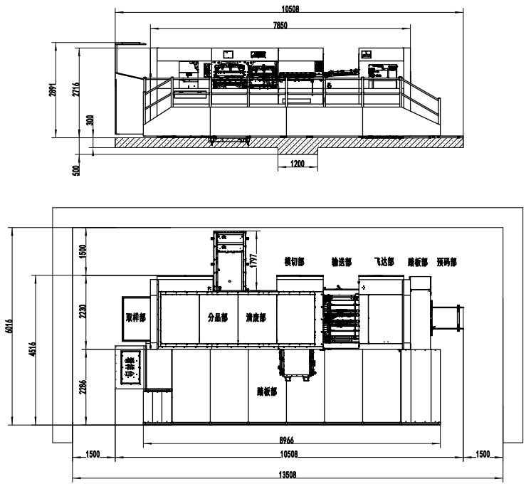 | 整機(jī)尺寸(含板框預(yù)裝架) | 10508×6916×2891mm (L×W×H)(長(zhǎng)含預(yù)上紙軌道;寬含腳踏板) |