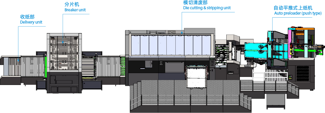 使生產(chǎn)設(shè)備產(chǎn)能達(dá)到最大化。這種聯(lián)線的組合方式是目前在國內(nèi)外市場上使用的比較多,而且穩(wěn)定的模切機聯(lián)線方式,是將全自動模切機的送紙部配上全自動送紙機來替代人工搬紙從而降低搬紙人員的勞動強度,提高送紙效率,在模切機的收紙部配上全自動分片機將多拼板的產(chǎn)品自動分片,減少人工分紙勞動成本,這也是近幾年很多紙箱包裝企業(yè)所尋求的新型作業(yè)模式,最大的優(yōu)點是可以針對客戶不同的要求、不同的產(chǎn)品工藝、不同的模切后道產(chǎn)品處理方式來定制設(shè)計。