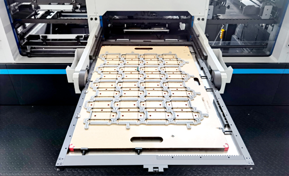 15mm模切鋼板墊板配備5mm組合式下墊板中心定位結(jié)構(gòu)+/-0.9mm縱橫向微調(diào)裝置, 換版快捷簡單, 減少補(bǔ)版作業(yè)時(shí)間。