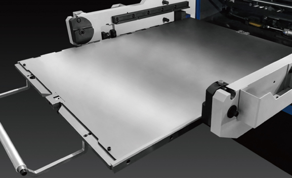 采用氣彈簧輔助動(dòng)力,到位減速機(jī)構(gòu)裝置,與壓紙框配備整體調(diào)節(jié)壓紙輪裝置,方便快速調(diào)節(jié)。