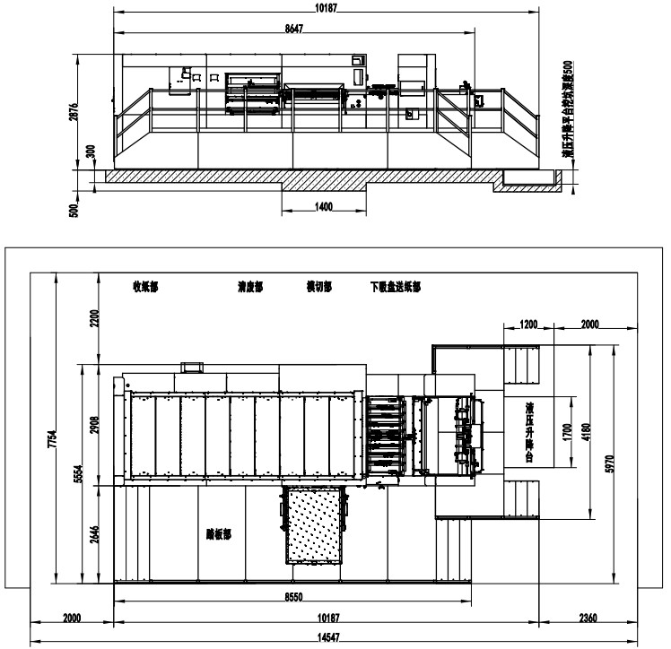 | 整機(jī)尺寸(卷簾式收紙) | 9887×5500×2800mm(L×W×H)(寬含腳踏板) | 10187×5970×2876mm(L×W×H)(寬含腳踏板) | 11652×6560×2972mm(L×W×H)(寬含腳踏板) | 14370×7160×2972mm(L×W×H)(寬含腳踏板) |
