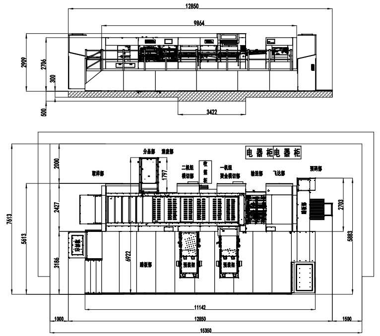 | Machine Dimensions(Including Die Preloader) | 14995×7613×2909mm(L×W×H) (L: paper prepared track included, W: platform included) |