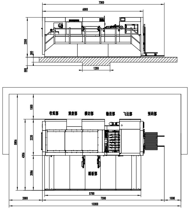 | Machine Dimensions | 7300×4306×2350mm(L×W×H) (L: paper prepared track included, W: platform included) |