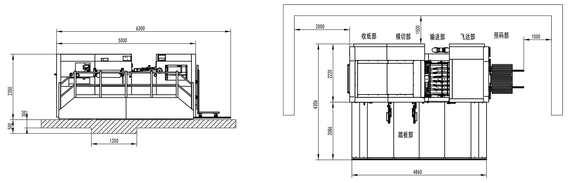 | Machine Dimensions | 6300×4306×2350mm(L×W×H) (L: paper prepared track included, W: platform included) |