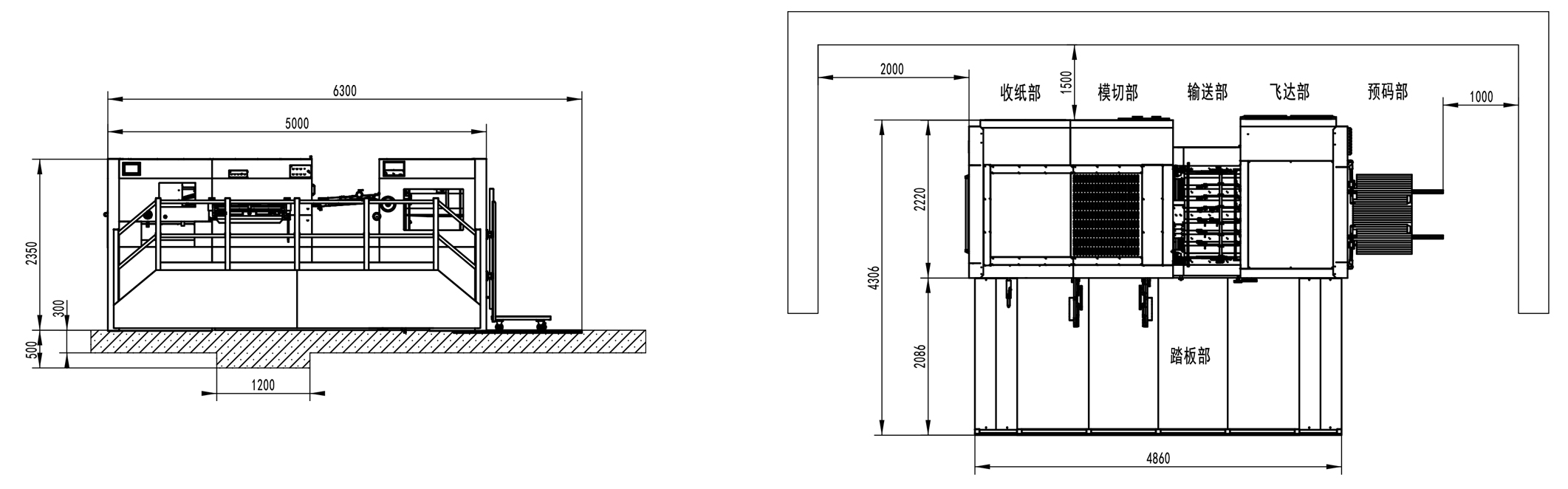 | Machine Dimensions | 6300×4306×2350mm(L×W×H) (L: paper prepared track included, W: platform included) |